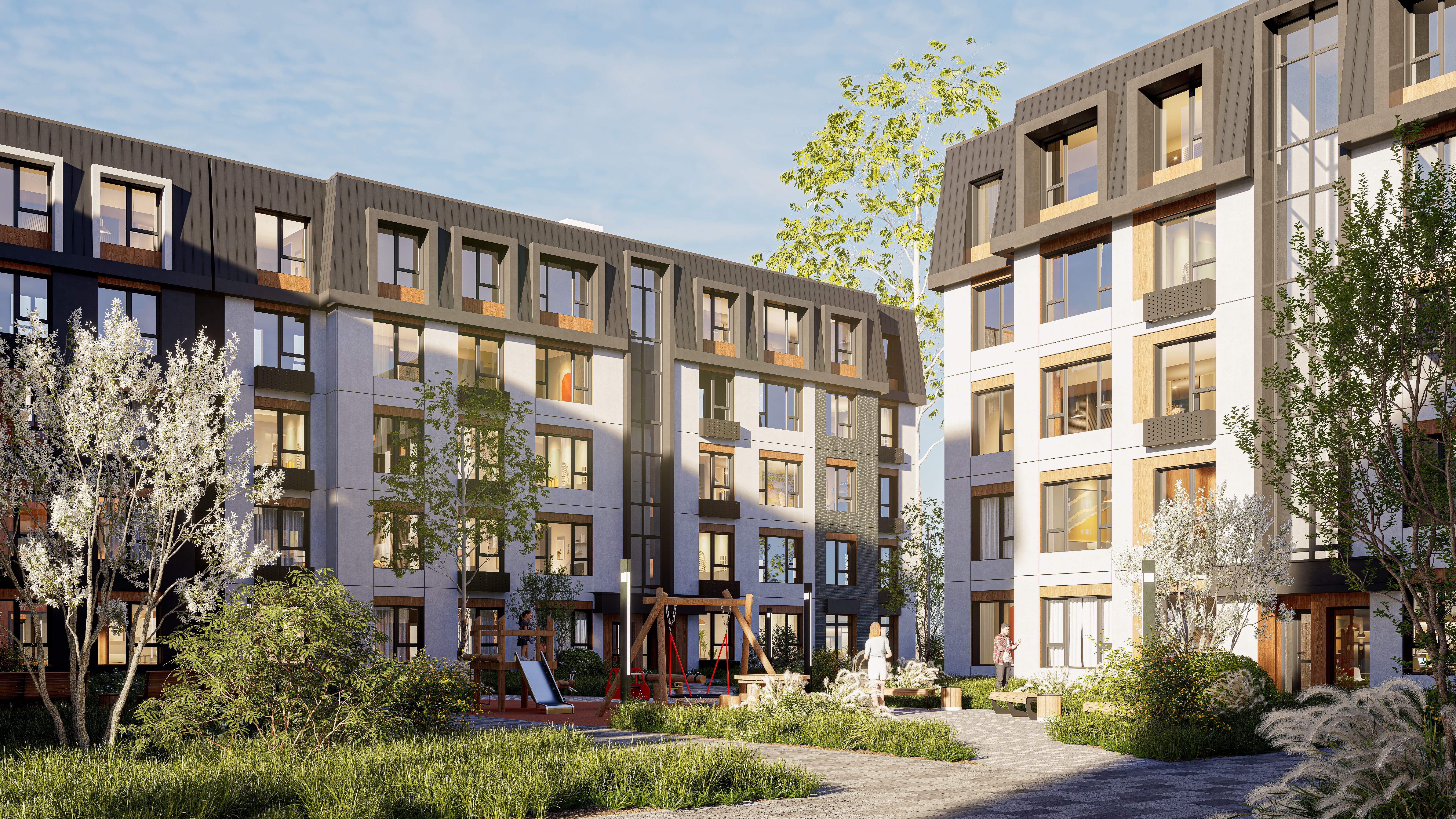Застройка выполнена в формате малоэтажных домов — редкость для Алматы. Монолитная конструкция и каркасно-ригельная технология обеспечивают высокую сейсмостойкость: комплекс проходит государственные испытания в 9 баллов.