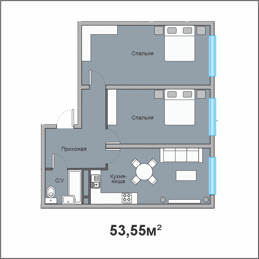Улучшенная черновая отделка включает в себя: стяжку пола, подведенные радиаторы, широкоформатные окна со сложным открыванием, продуманные выводы под розетки и тяжелую металлическую дверь. Покупка трёхкомнатной квартиры на этапе строительства является самой выгодной, так как стоимость квартир стабильно растет на вторичном рынке. А гарантия КЖК позволяет с уверенностью ожидать сдачи объекта не испытывая лишних переживаний.