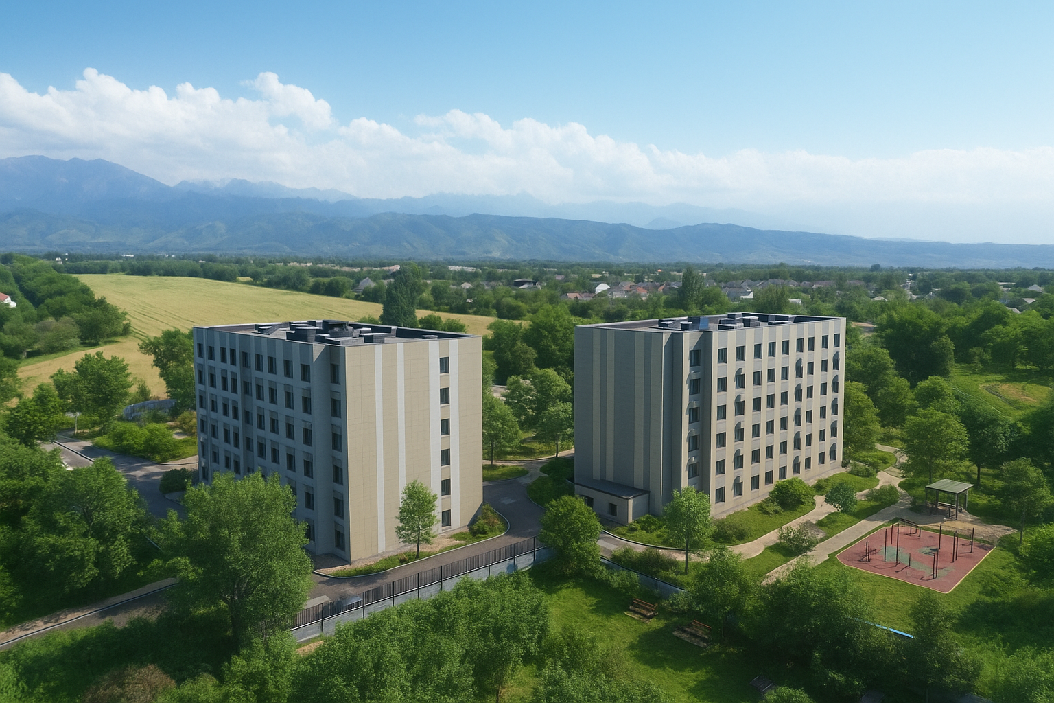 Комплекс выполнен в формате малоэтажной застройки с монолитным каркасом и заполнением из газоблоков, что обеспечивает повышенную сейсмостойкость. Территория полностью закрыта, оснащена видеонаблюдением, а на въездах установлены шлагбаумы для безопасности жителей.